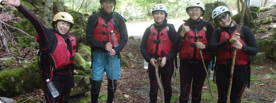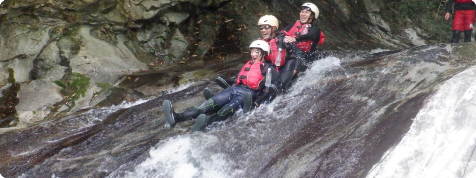 雄大な自然の中、清流に身をゆだねながらスリルと爽快感を味わえるのが「キャニオニング」です。岩肌を滑り降りたり、天然のウォータースライダーを滑走したり、透明度の高い水に飛び込んだり、まさに大自然を全身で感じるアクティビティ。